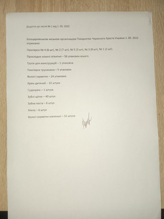 Передали допомогу у с. Мала Вільшанка через Червоний хрест. 01.05.2022 та 19.05.2022